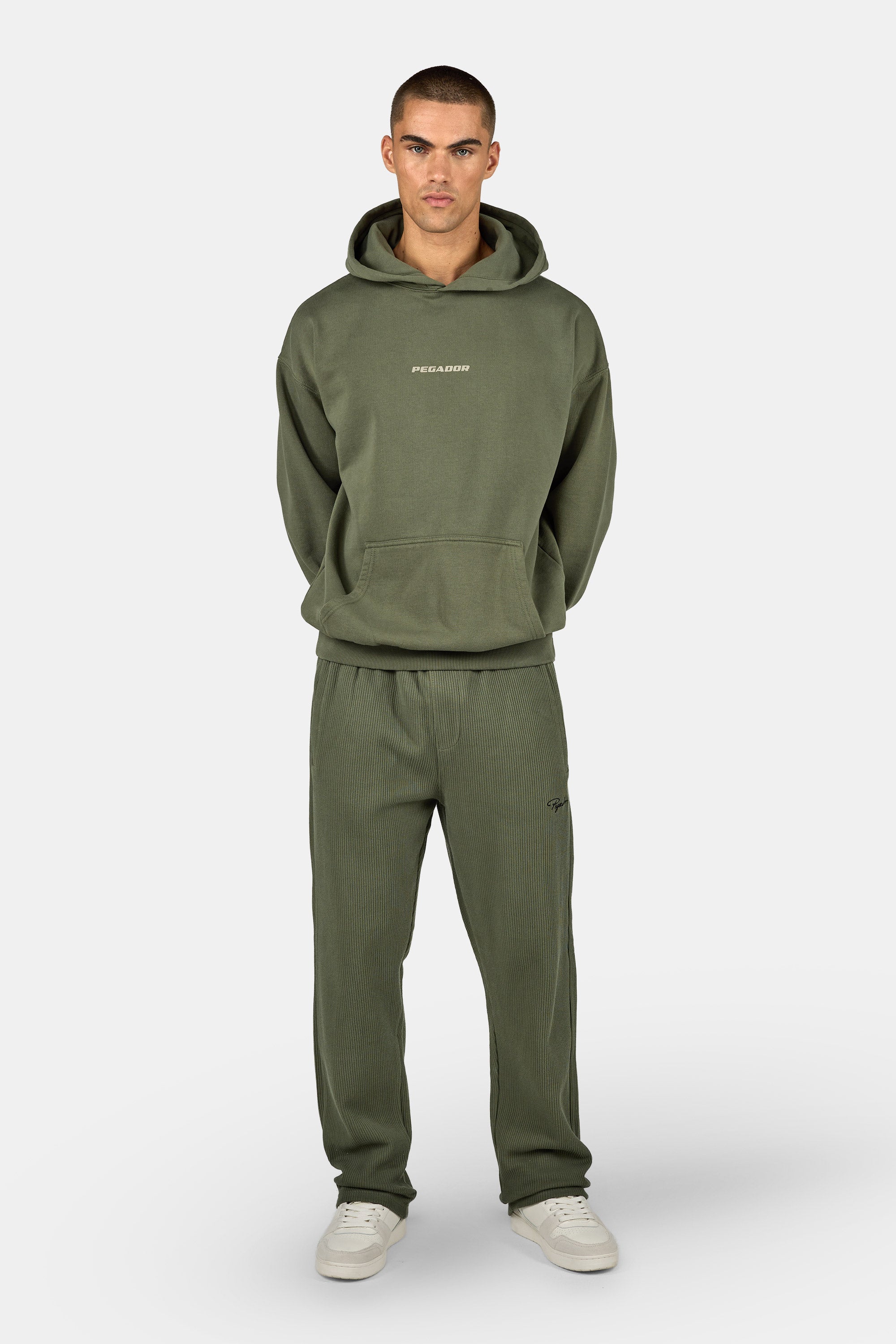Colne Logo Oversized Hoodie Washed Faded Olive