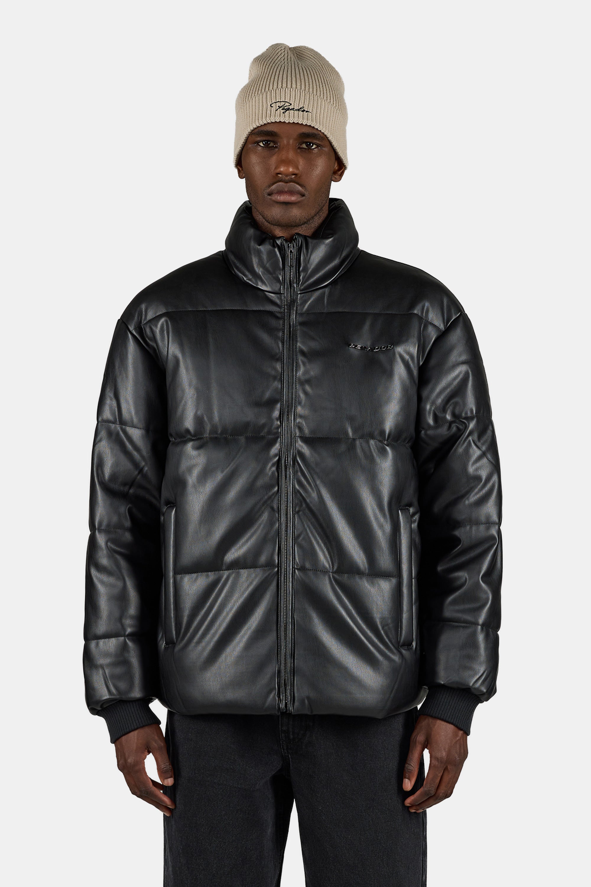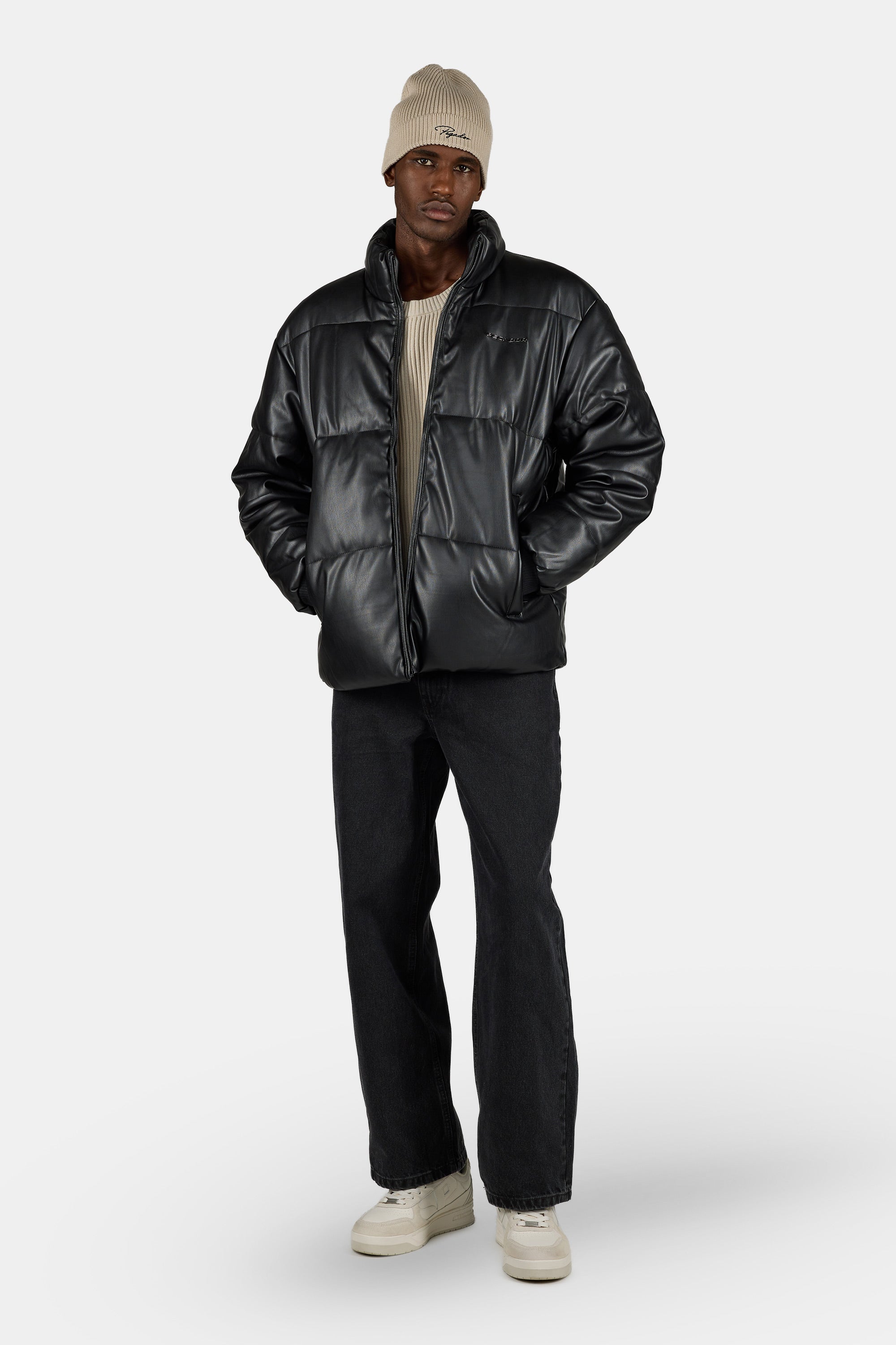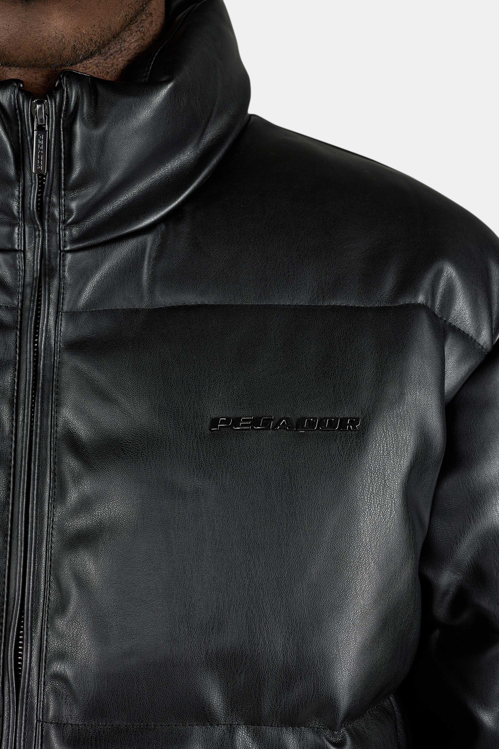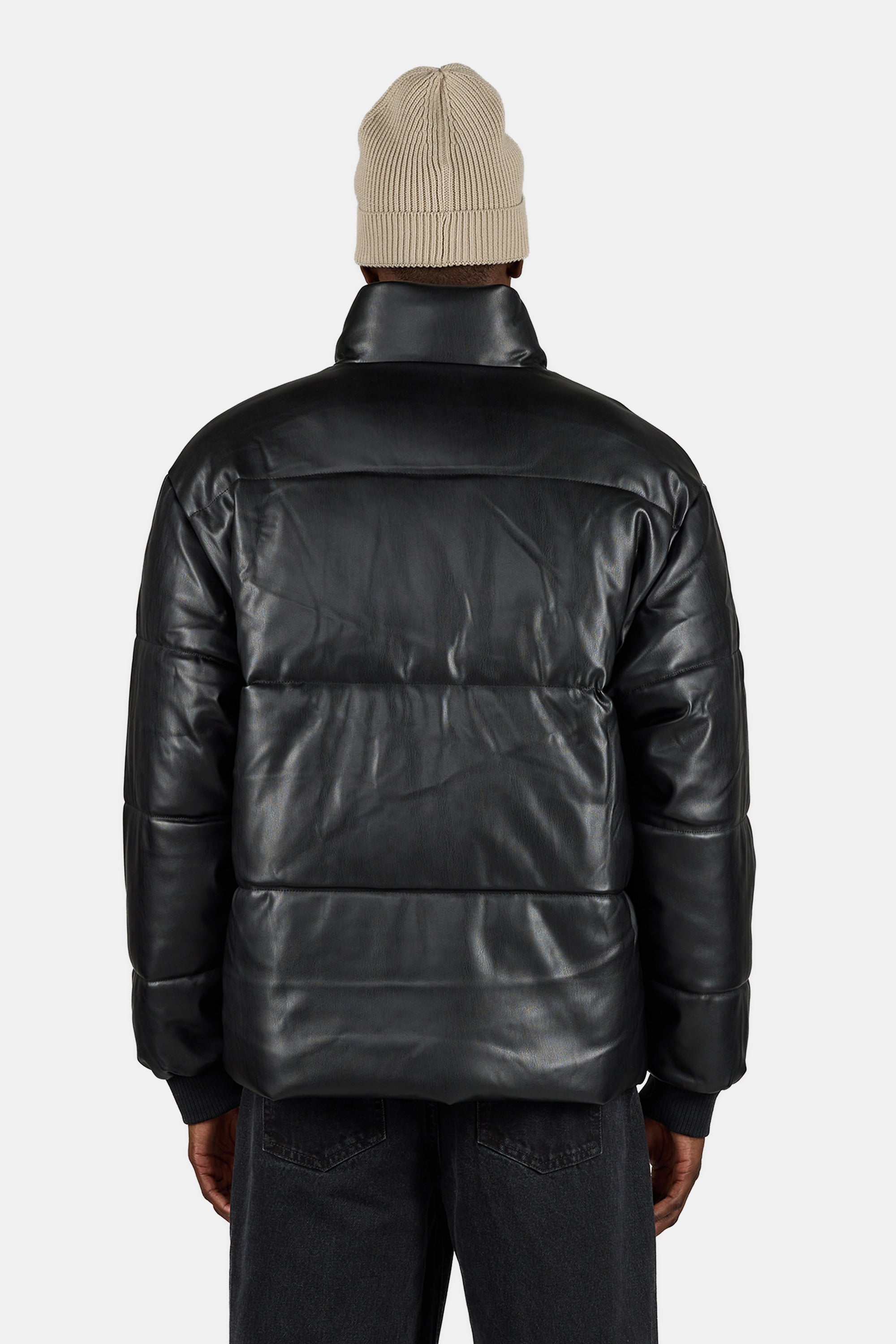 Solin Vegan Leather Puffer Jacket Black