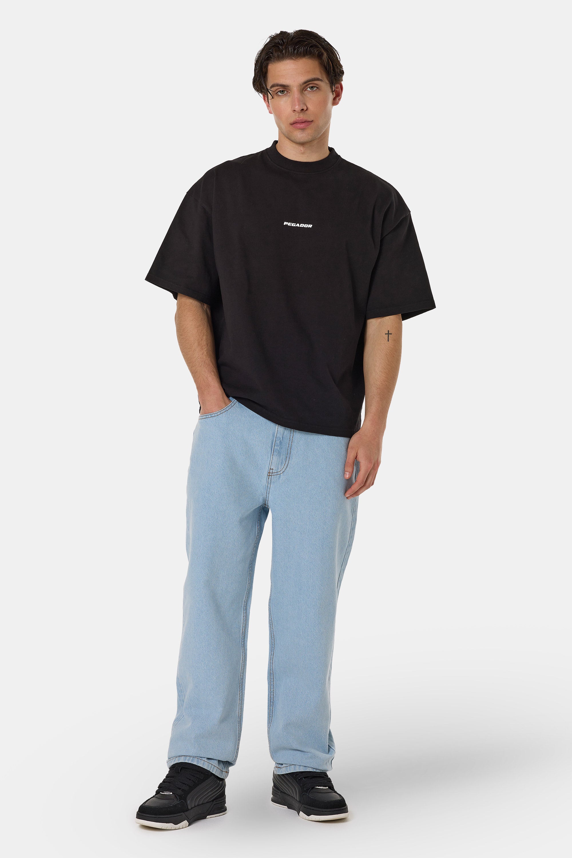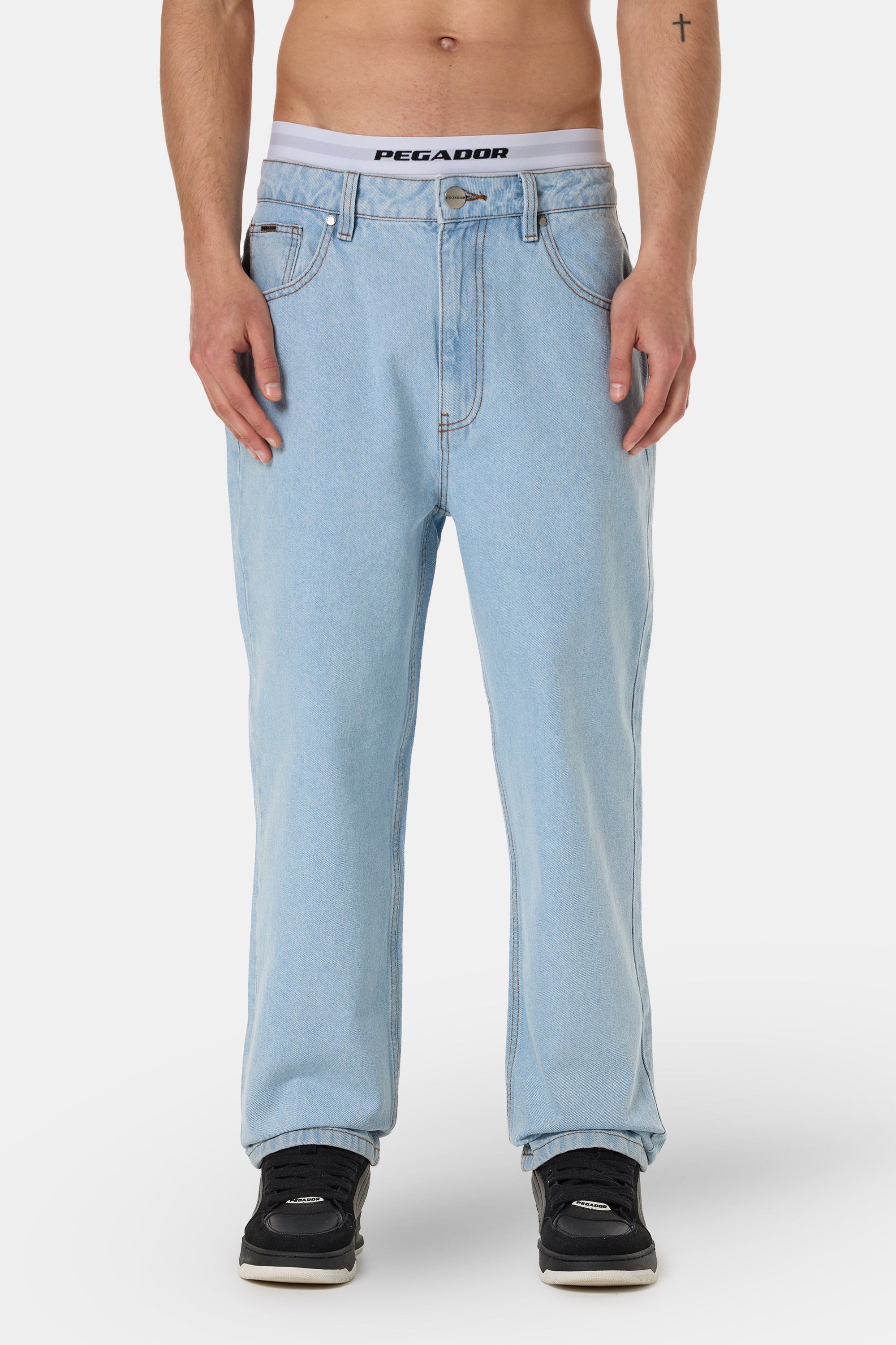 - silber-farbiger Metall-Logo-Patch auf der rechten Hosentasche