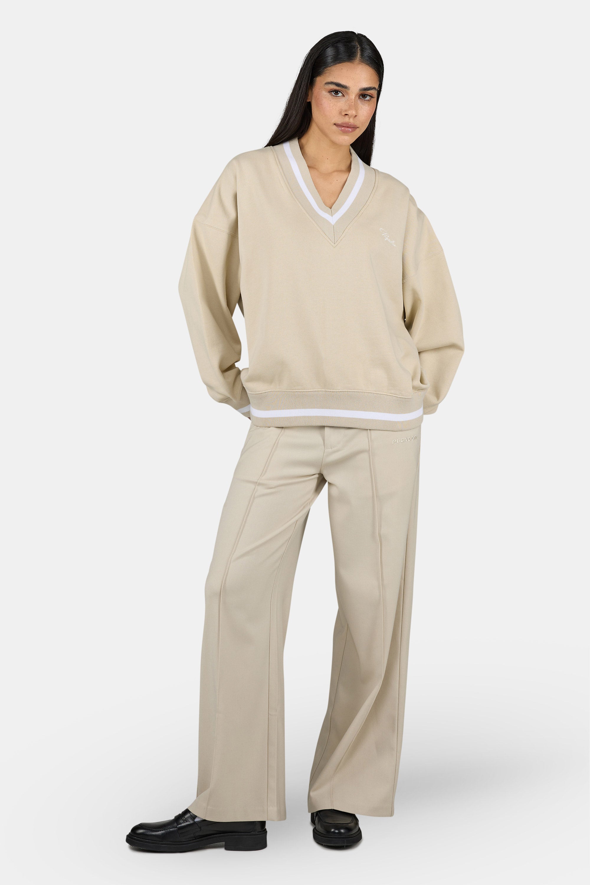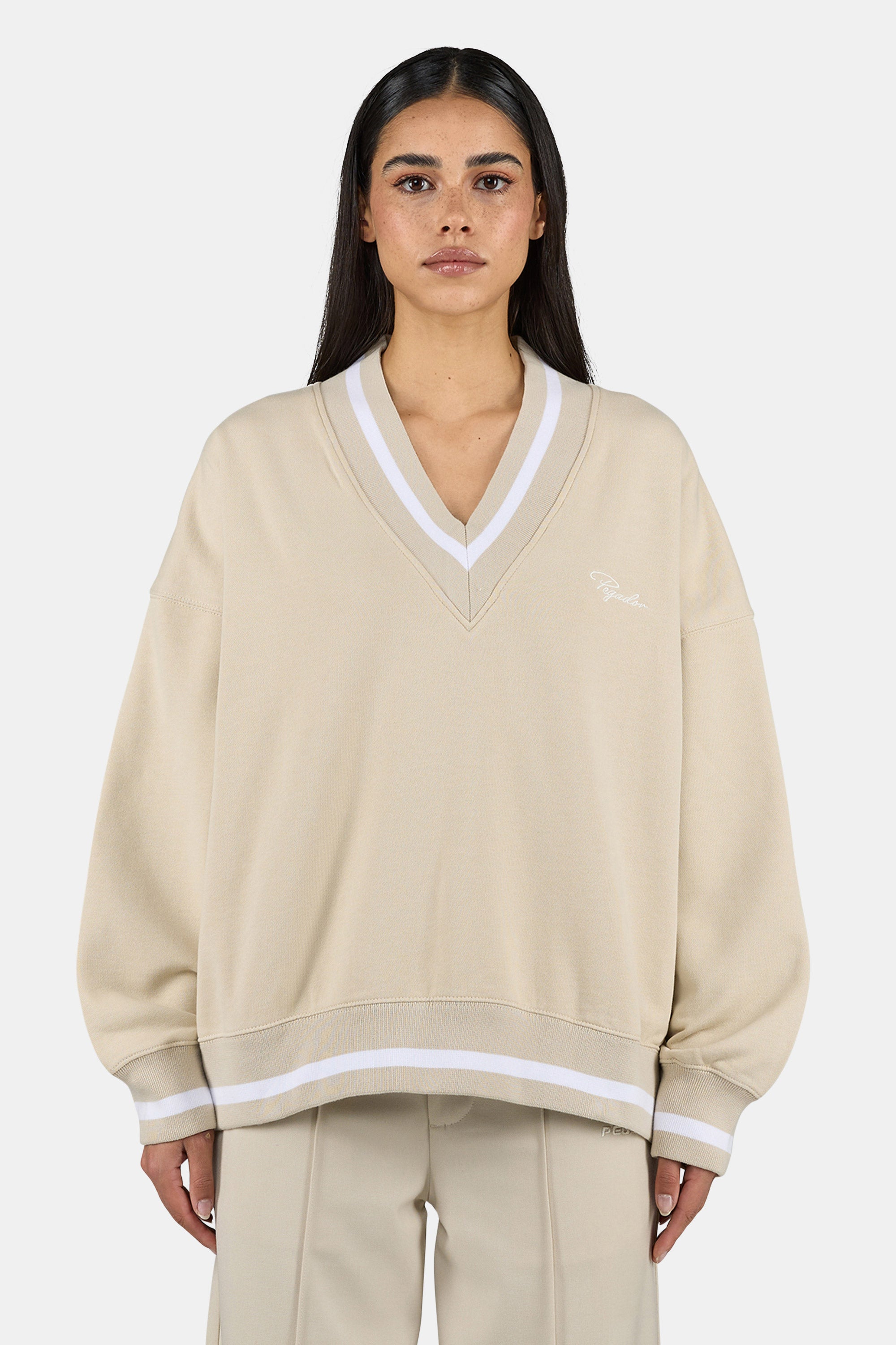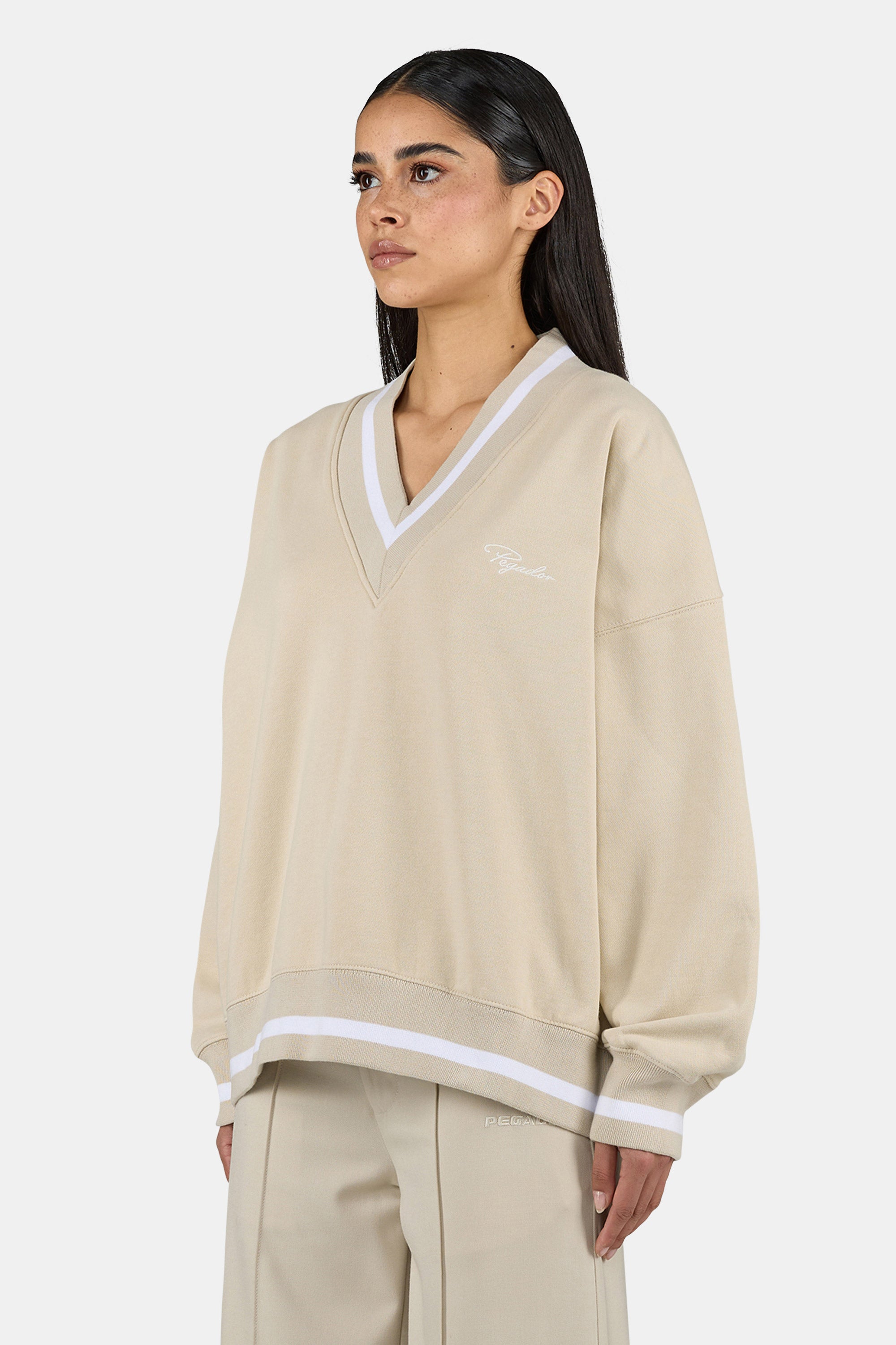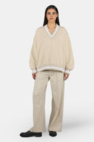 Stina V-Neck Oversized Sweater Washed Light Beige