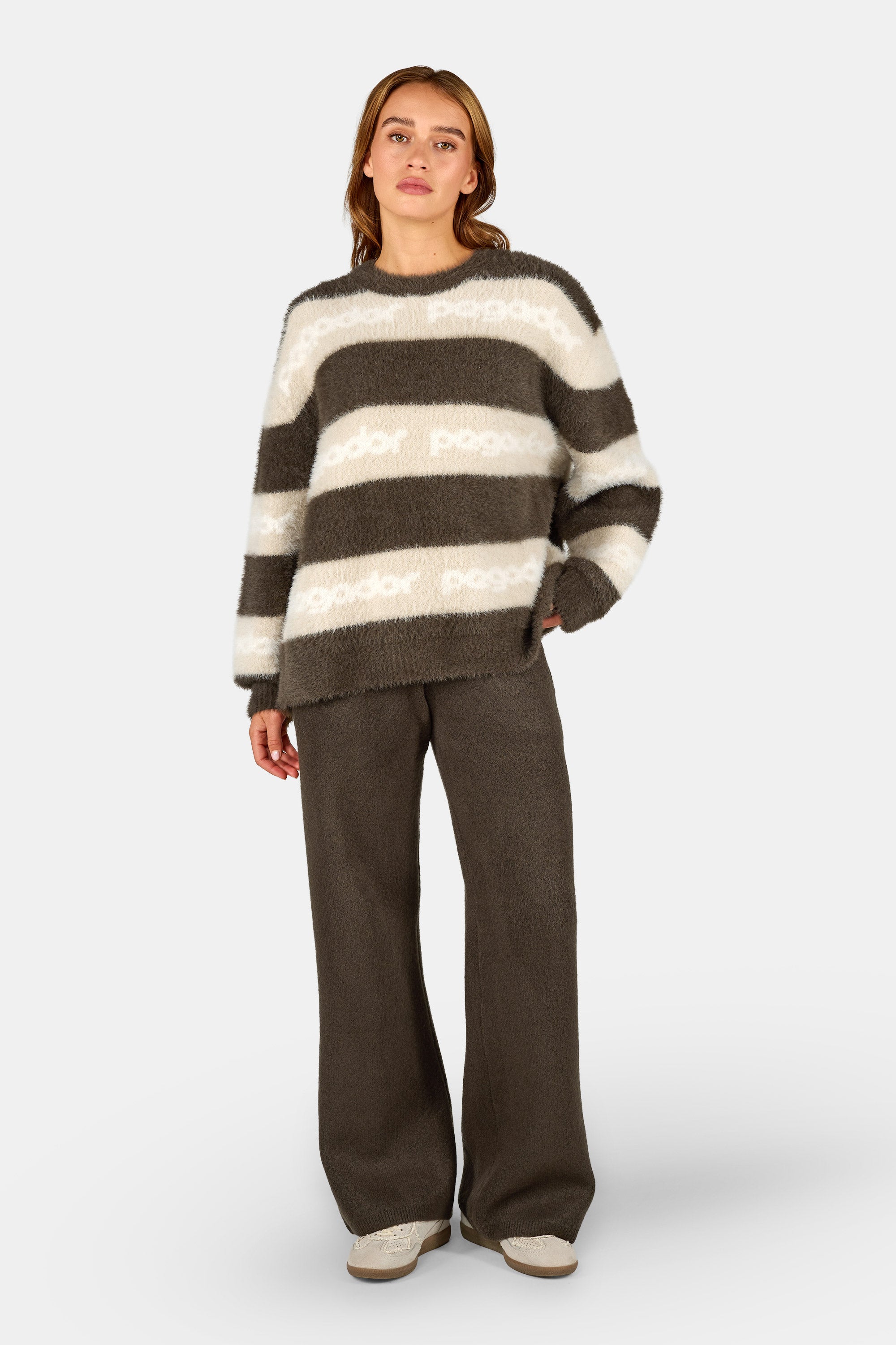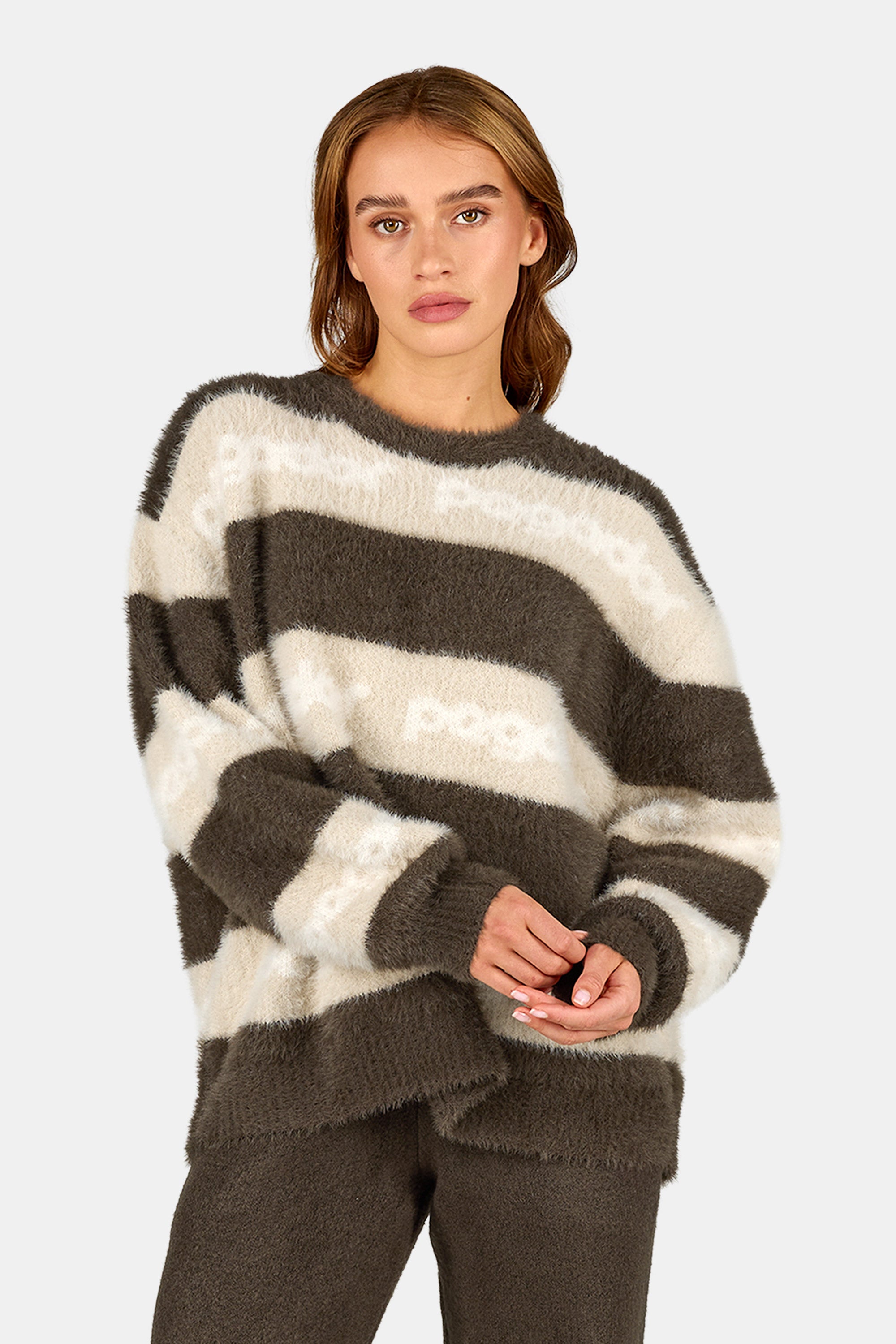 Vincenza Furry Knit Sweater Walnut Brown