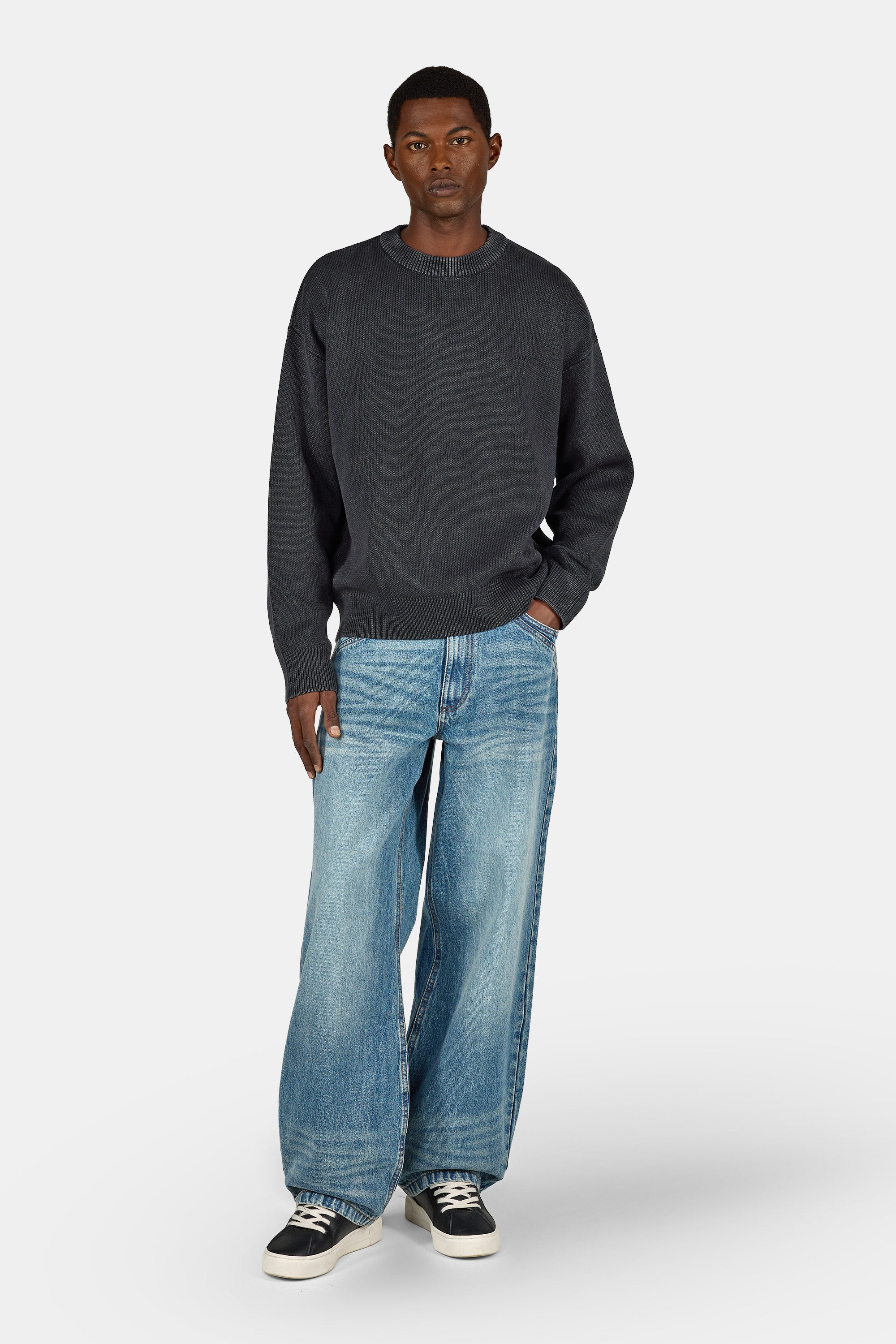 Logo Oversized Knit Sweater Dyed Black