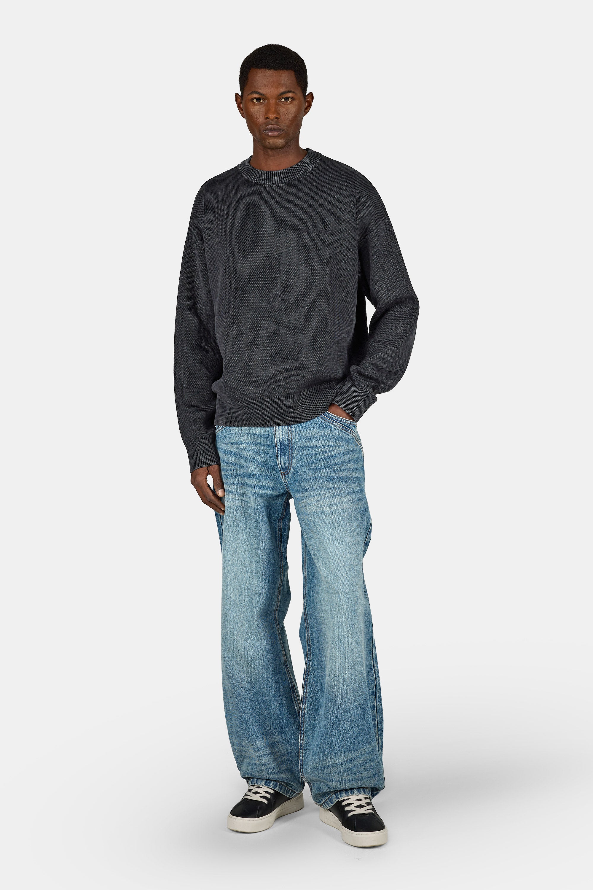 Logo Oversized Knit Sweater Dyed Flint Grey