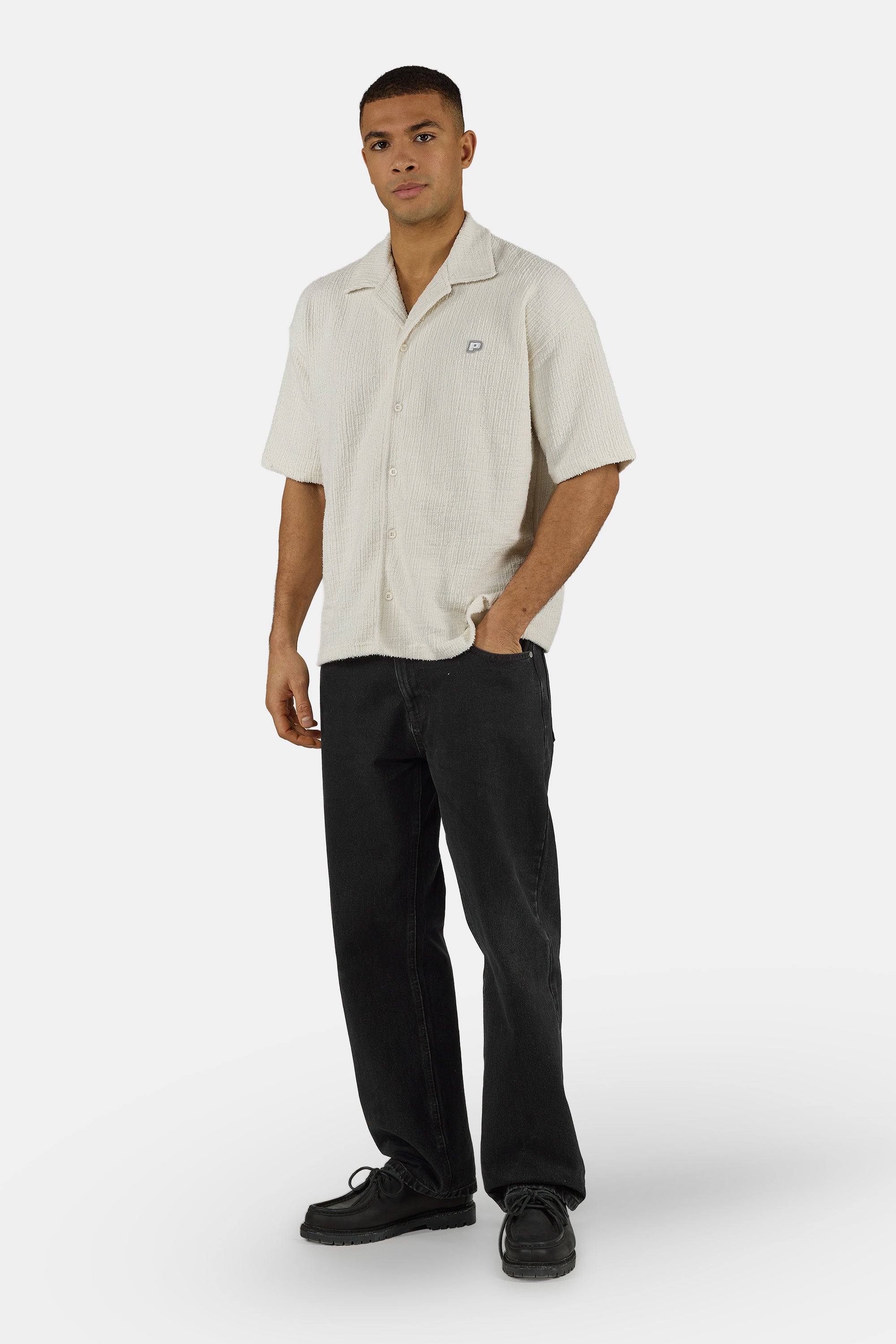 - salty cream structured knit shirt