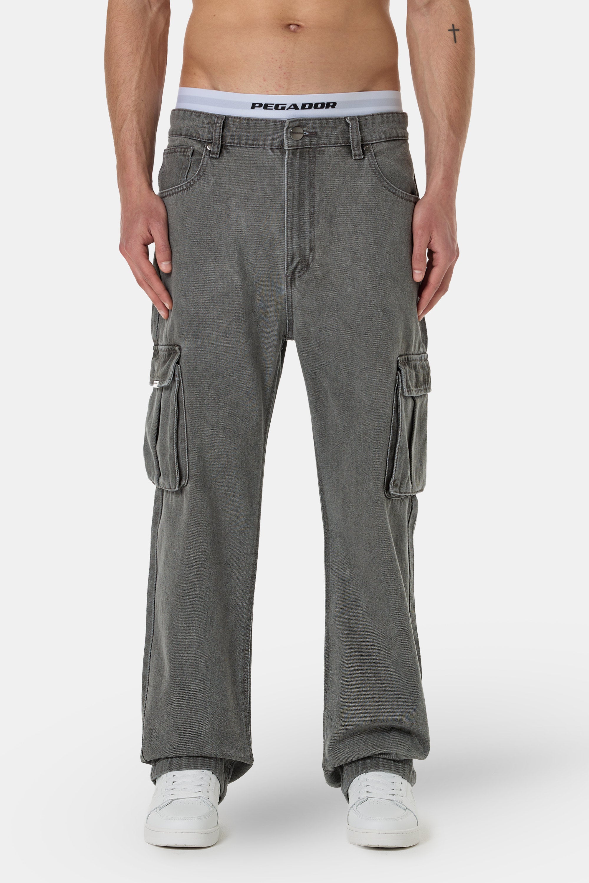 Dawes Cargo Baggy Jeans Washed Grey