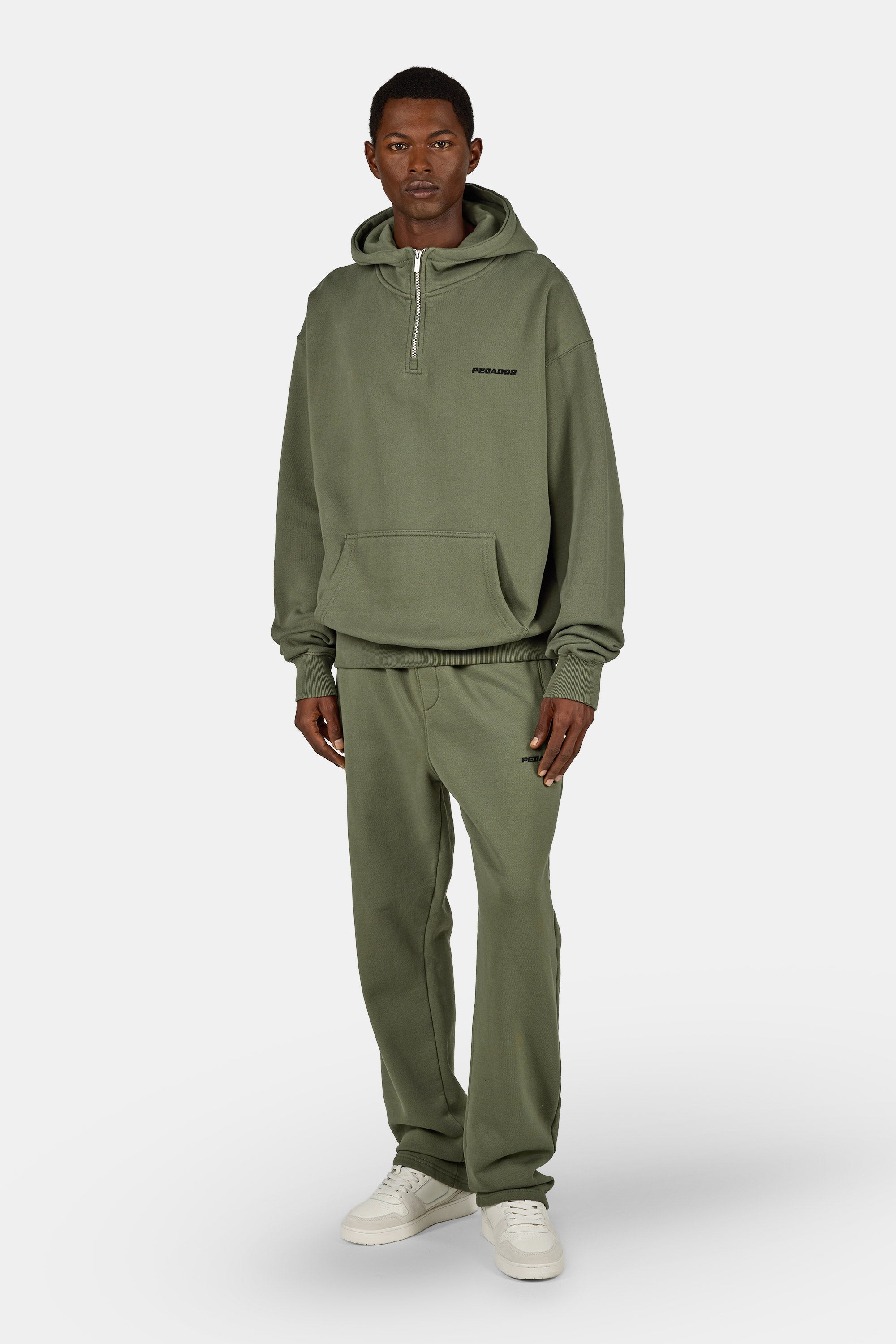 - faded olive farbiger gewaschener Half Zip Hoodie