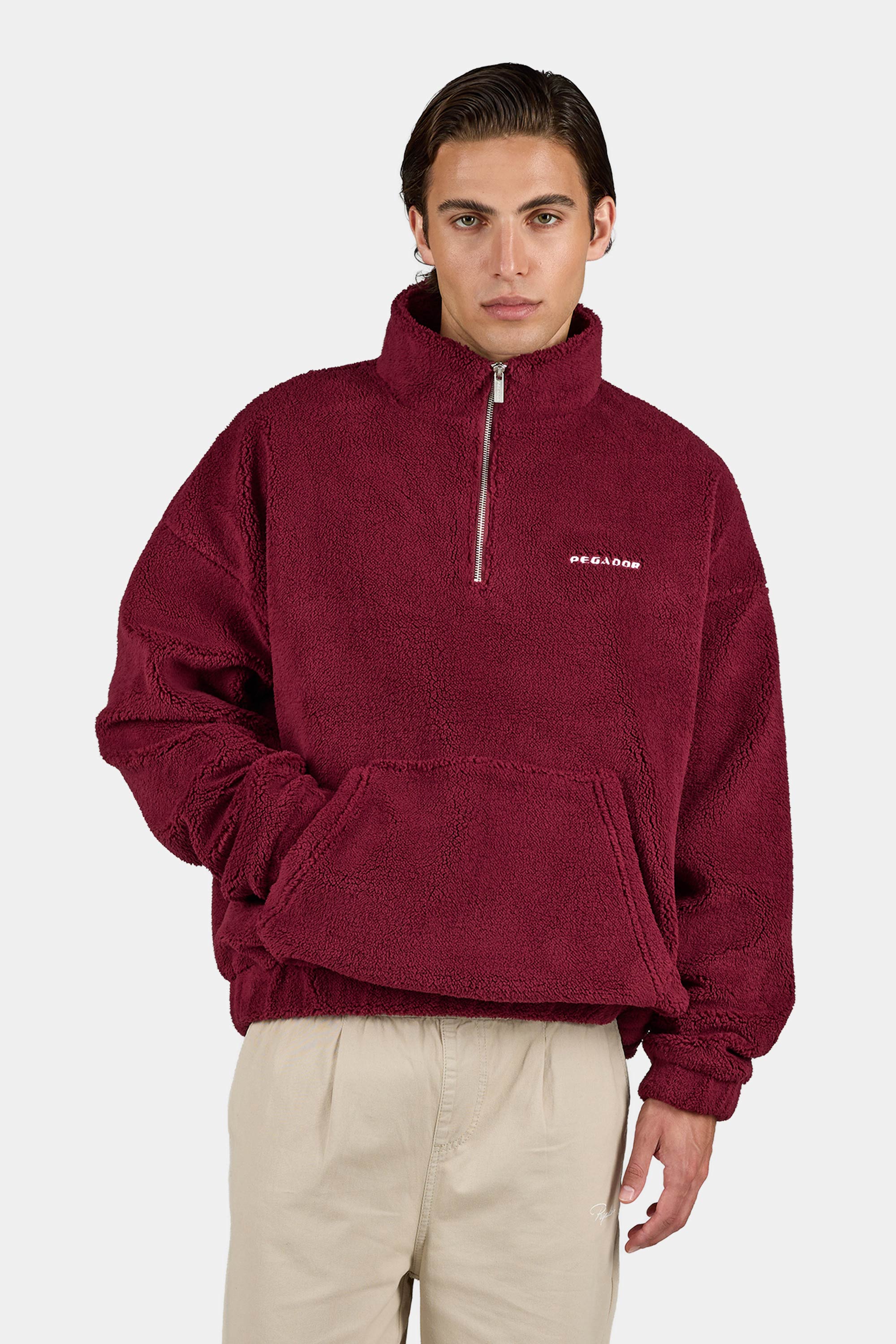 Puka Teddy Half Zip Sweater Maroon Red